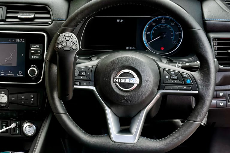 Our Nissan Leaf is now fitted with mobility adaptations they include.Jeff Gosling left foot escalator for right leg problems, steering ball and the secondary steering wheel controls by Bever, this state of the art wireless system incudes buttons to control the horn, indicators, lights, front & rear wipers, hazard lights, and the front and rear windscreen washers and more can be positioned for left or right handed. disabled driving lessons